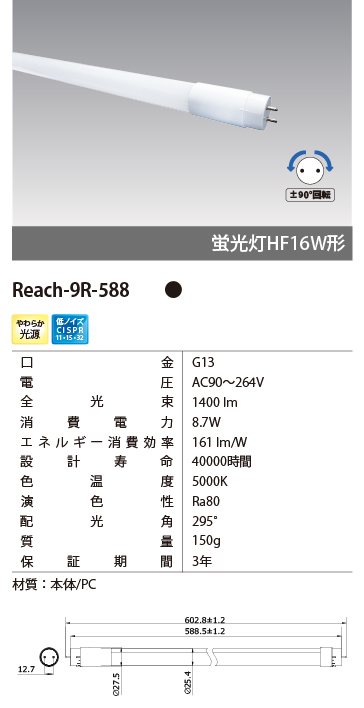 | 種類 | HF16形回転ソケットLEDランプ | サイズ | φ27.5×588.5㎜ |