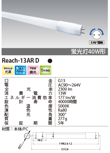 | 演色性 | Ra80 | 口金 | G13(回転ソケット) |