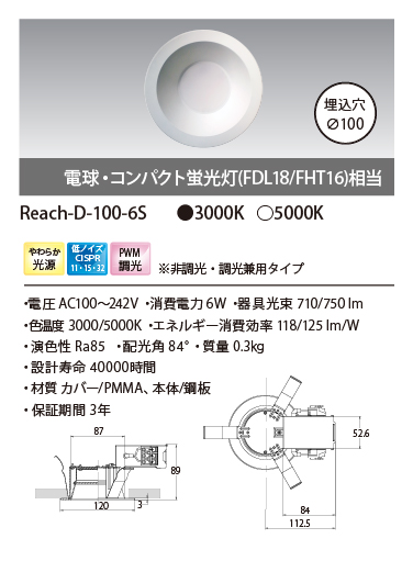 Reachダウンライト(非調光・調光兼用タイプ/PWM)
