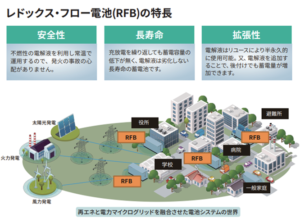 低コストで長期間の電力貯蔵が可能となります。 このように、レドックス・フロー蓄電池は、安全性と寿命などにおける優位性を持っています。