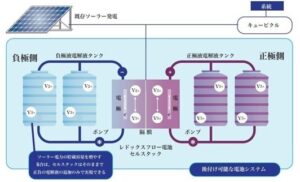 より安全な蓄電池の「レドックス・フロー蓄電池」を太陽光発電システムと組み合わせてご提案いたします。