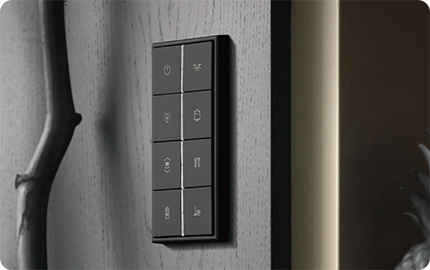 JUNG社のスマートスイッチを導入することで、洗練された空間デザインと快適性・利便性を同時に実現。直感的な操作で、オフィスや住宅の使用環境に最適な制御を可能にします。各種KNXセンサーを活用し、人の動きや時間帯に応じた細かなエネルギー制御をいたします。不要な電力消費を抑制しつつ、最適な環境を維持。照明、空調、ブラインド、窓を連動させることで自然光の利用や冷暖房負荷を削減いたします。